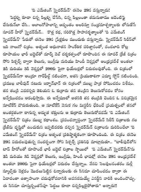 HomeCinema The Amazing Spider-Man Matter and stills |spiderman telugucinemas 1:09 AM 0 You Might Like View all