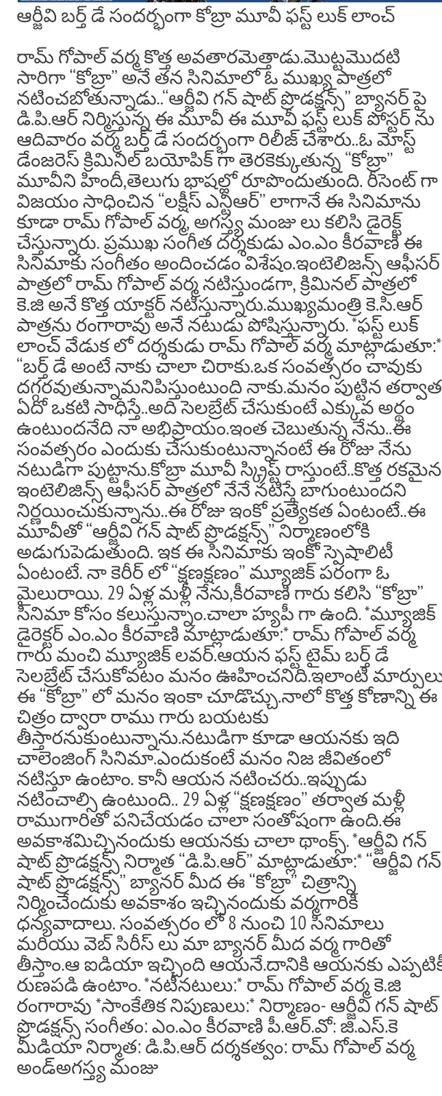 Rgv Cobra Movie Launched